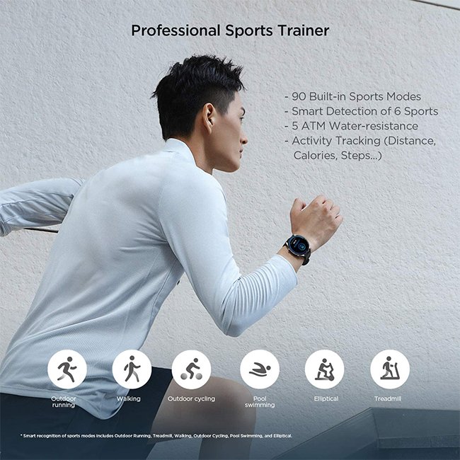 90 Built-in Sports Modes & 5 Atm Water-resistance : Activate one of the sports modes and the watch will produce a corresponding analytical report after you finish to help you improve your exercise plan. Intelligent recognition of sports modes eliminates the need to manually select the sports mode, and 5 ATM water-resistance means you can wear it while you swim.