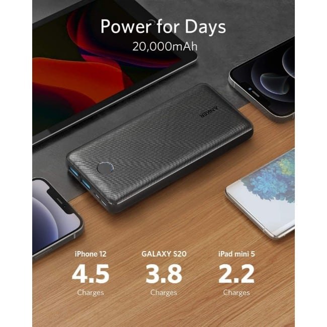 Ultra-High Cell Capacity: The massive 20,000mAh cell capacity provides more than 5 charges for iPhone XS, almost 5 full charges for Samsung Galaxy S10, more than 4 charges for iPhone 11, and over 2 and a half charges for iPad mini 5.