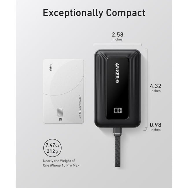 Anker A1688H11 Zolo 30W Portable Charger 10000mAh Power Bank with Built-in USB-C Cable