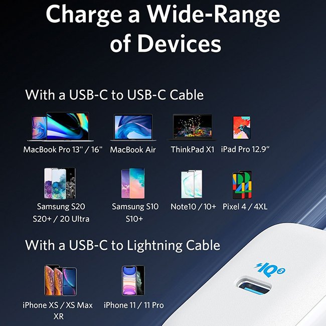 65W fast charger Anker PIQ 3.0 PPS, PowerPort III Pod for MacBook Dell XPS 13 Galaxy S20 S10 Note 10 + 10 iPhone 11 Pro XR Xs X, iPad Pro, Pixel, and so on