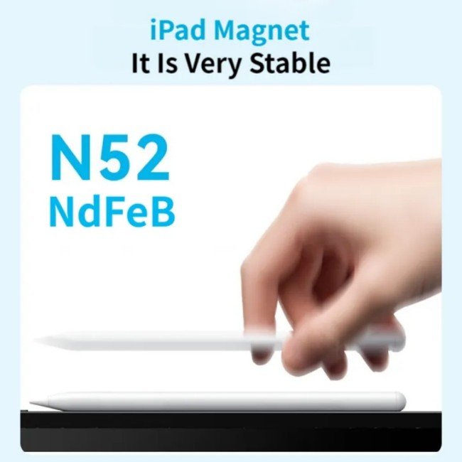 An N52 neodymium magnet enables easily attaching Anker Pencil to the side of compatible iPad models.