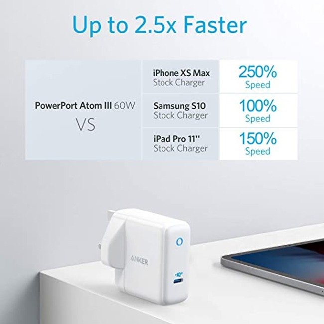 Universal High Speed – From iPhone to Samsung to USB-C laptops and more, Anker’s signature PowerIQ 3.0 technology provides high-speed charging to virtually any device.