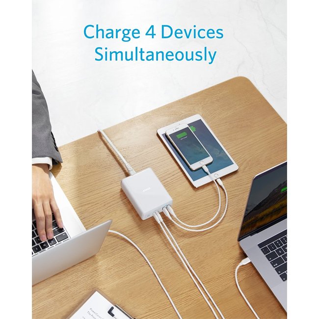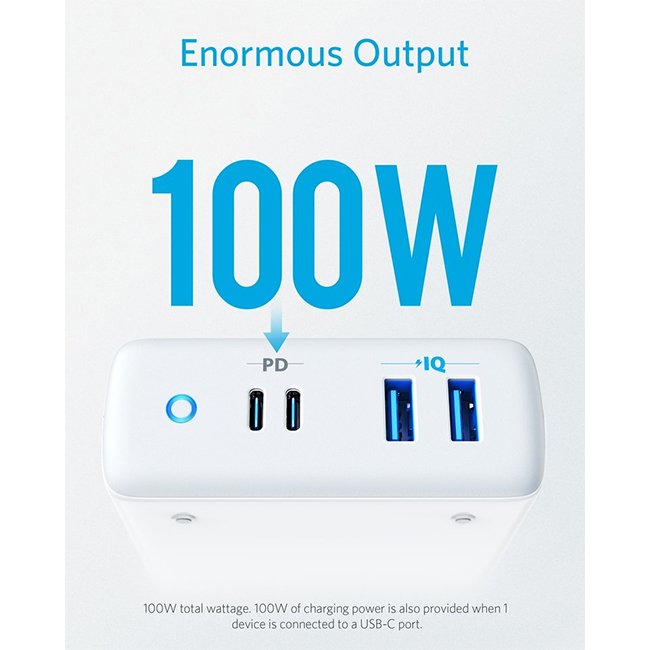 Charge up to 2 laptops or USB-C tablets, and 2 smartphones or other devices at the same time with a record-breaking 100W of charging power.