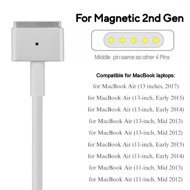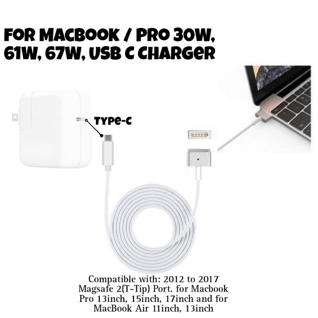 Apple 1.8M USB Type-C to MagSafe 2 Cable This replacement USB C to MagSafe 2(T-Tip) Converter is designed for converting for MacBook / Pro USB C charger to charge your old version for MacBook with MagSafe 2(T-Tip) interface, so it could preserve the value of your investment in chargers and make your life more convenience. It is made of premium plastic material to provide more efficient thermal radiation, so you don’t have to worry. Also, its compact and lightweight design is easy for your to take in your bag and easier to leave charger cable in different places you use instead of unplugging and plugging in wherever you go. It also perfects for traveling, enterprise, school teaching.