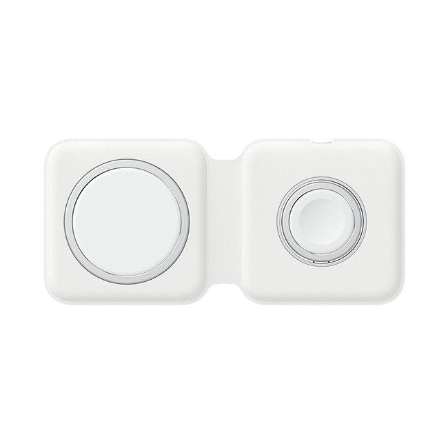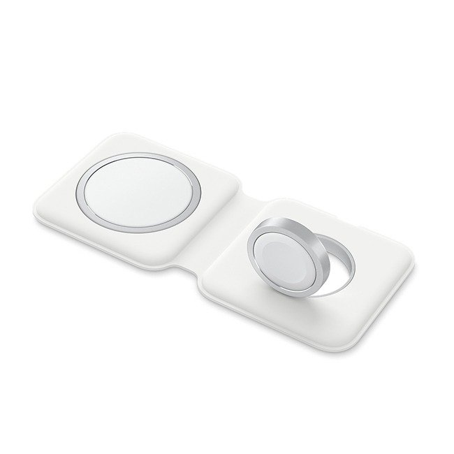 The MagSafe Duo Charger conveniently charges your compatible iPhone, Apple Watch, Wireless Charging Case for AirPods, and other Qi-certified devices. Just place your devices on the charger and a steady, efficient charge begins on contact. The charger folds together neatly so you can easily take it with you wherever you go.