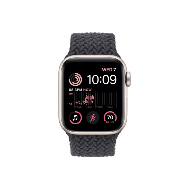 Apple Watch SE 2nd Gen 40MM Starlight Aluminum GPS – Midnight Braided Solo Loop Band