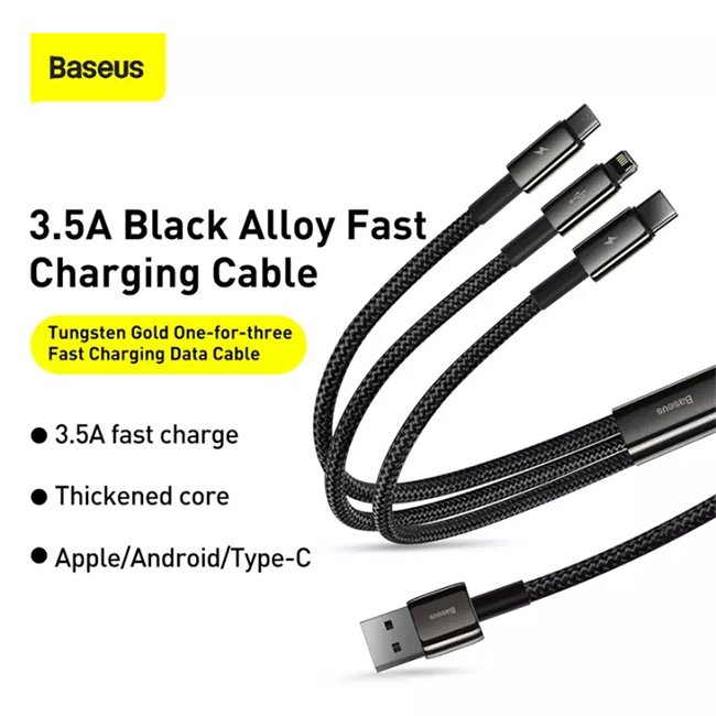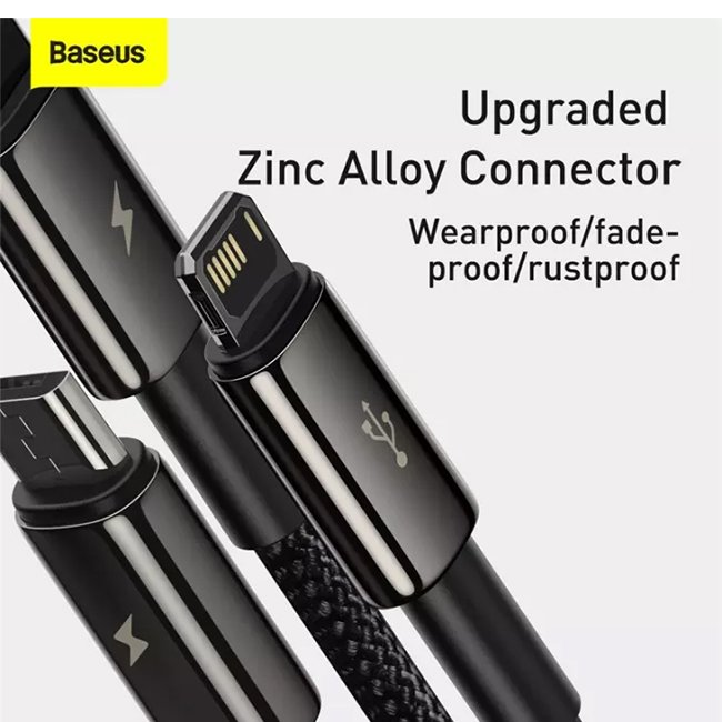 3-in-l Micro/iP/Type-C port for using at home, in the car and office.