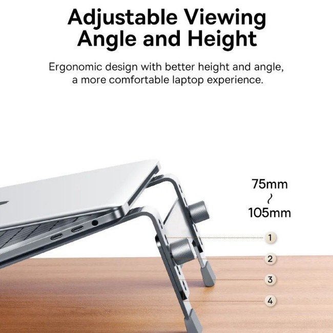 Convenience is the basis of working on a laptop. If you are looking for a proven way to relieve the muscles of the spine and neck, choose the Baseus stand. It has a lightweight design that will hold laptops up to 17 inches and tablets securely. You can freely increase or decrease the angle of inclination. There are 4 adjustment levels.
