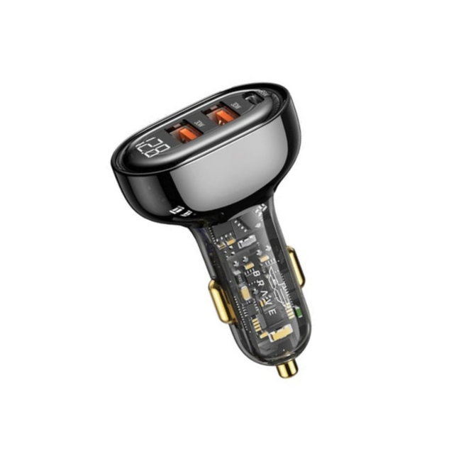 Brave B-22 80W 3 Ports Transparent Digital Display PD & Dual Q3.0 Fast Car Charger