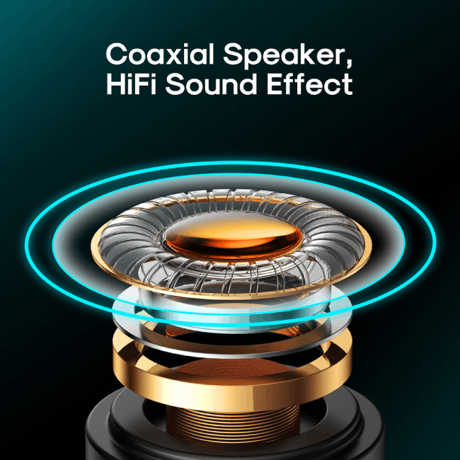 Dual speakers, powerful bass, clear & clean mids & highs, immersive HiFi audio.