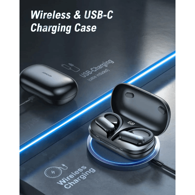 A very important function in wireless headphones that connect to the phone via Bluetooth is the length of work on a single charge. By choosing the Joyroom model, you get not only headphones, but also an elegant case. It also acts as a powerbank for headphones – after they are discharged, just put them in it and they will be charged again. The big advantage of the case is the additional display informing about the charge level.