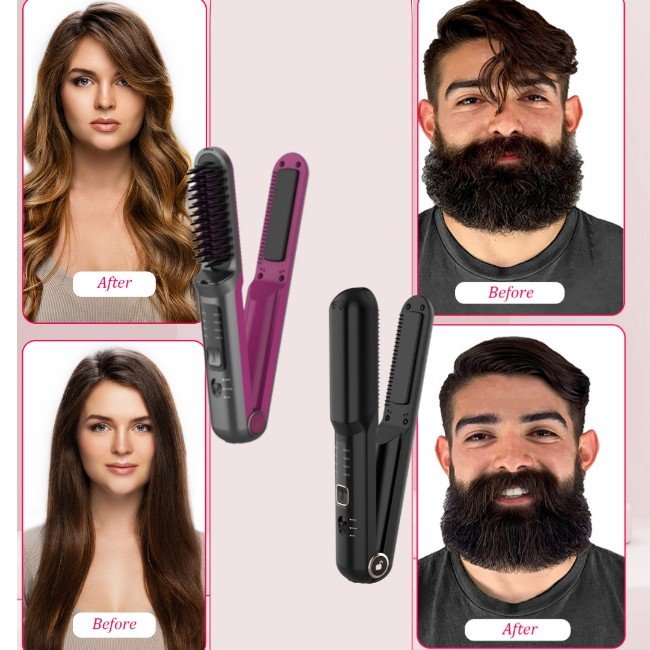 2-IN-1 DESIGN: Easily switch between the hair straightener and hot brush to meet your hair and beard styling needs.