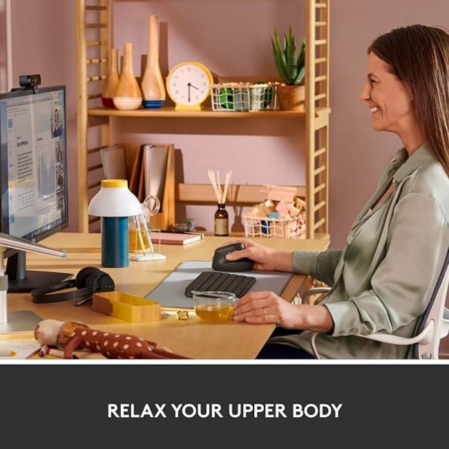 Lift yourself up: When the desk life gets you down, lift yourself up with Logitech Lift Vertical Ergonomic Mouse – a great fit for small to medium right hands