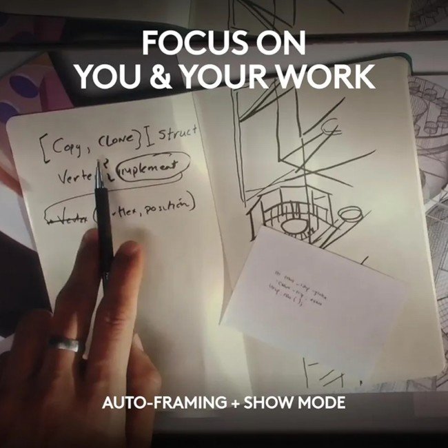 Intelligent Video Experience: Present items on your desk easily with Show Mode (4); get a clear, responsive image with autofocus; stay centered on screen with auto-framing (4) (5)