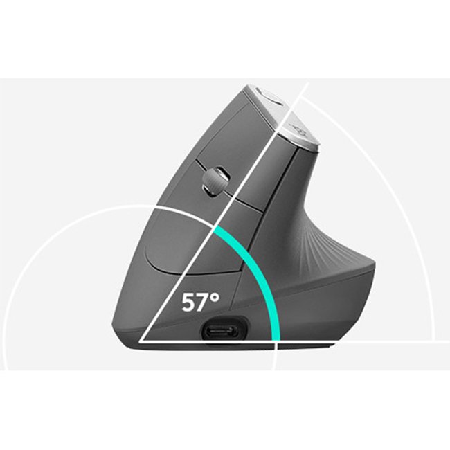 The MX Vertical’s natural handshake position is designed to be ergonomic with a 57° vertical angle that reduces pressure on your wrist. Its unique form is designed to fit a variety of hand shapes and sizes, while the textured rubber surface assures a solid and natural grip.
