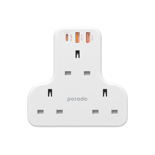 Porodo Wall Socket comes with 3-outlet sockets with 3 fast-charging USB ports, 2 USB-A, one USB-C. The outlet is designed for 3 plug sockets or UK plug mode. Suitable for Home, Office, School, Kitchen, etc. The Porodo Wall Socket extended the wall socket to 3 AC outlets and 3 USB ports. You can charge 6 devices together at the same time simultaneously. The maximum output for the USB port is 20W (5V3A) and the AC output is 3250W (250V/13A). This wall charger Protects against high temperatures and overheating. The material which has been used in this wall socket is fireproof.