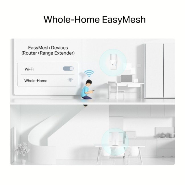 EasyMesh-Compatible – Co-work with EasyMesh products, to provide a more flexible and cost-effective Mesh network with a single Wi-Fi name for seamless whole-home coverage.