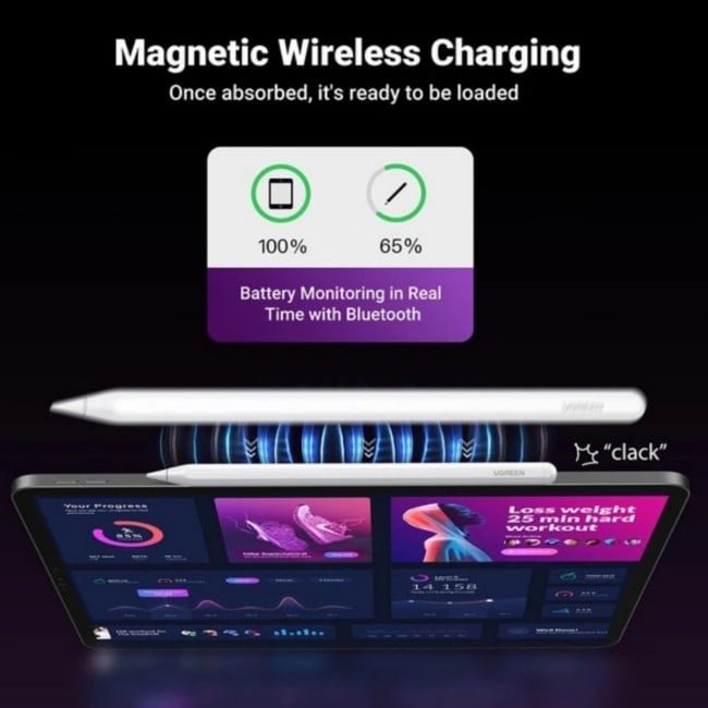 Magnetic Wireless Charging: UGREEN iPad Pencil incorporates magnetic wireless charging. Instead of charging with a cable, simply dock the stylus to the side of the iPad and it charges automatically. You can charge it anytime, anywhere, and record your inspiration on the go. The magnetic hook makes it easy to store and prevents it from getting lost