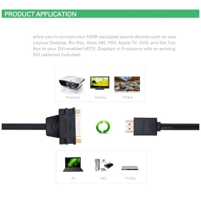 Works with a variety of HDMI-enabled devices, including laptops, desktops, gaming consoles, Blu-ray players, and media boxes, connecting them to DVI-enabled displays such as monitors, projectors, or HDTVs.