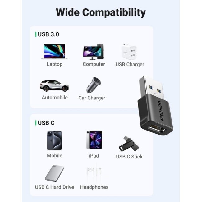 UGREEN 45299 USB-C to Female to USB-A Male Adapter Set – 3 Pack