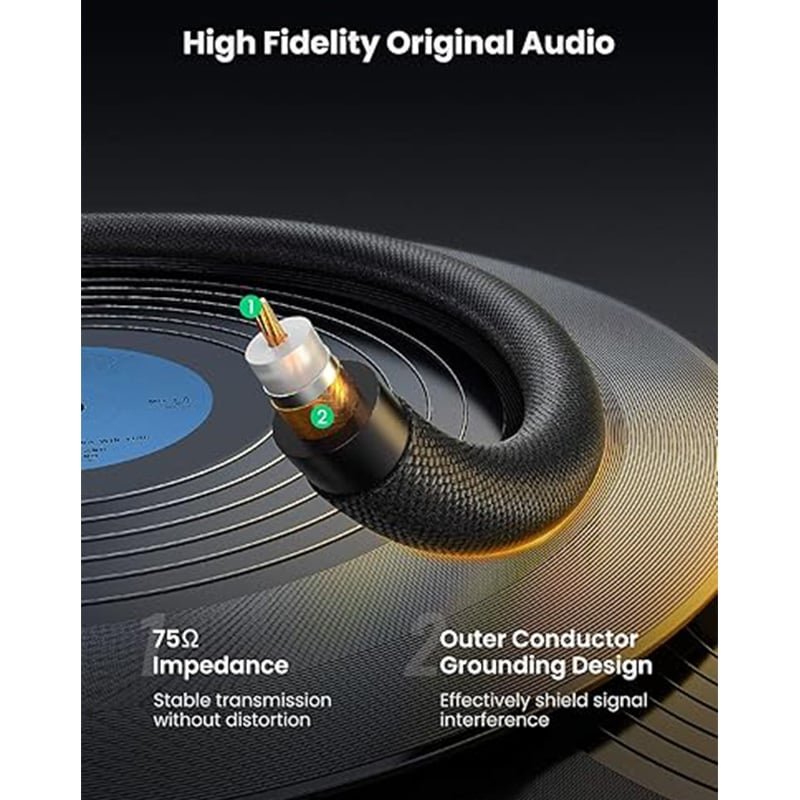 Outstanding Sound Quality: Outstanding Sound Quality: UGREEN RCA Digital Coaxial Cable is meant to offer high-fidelity, ultra-clear and noise-free audio. The premium RCA Cable features a 75Ω constant impedance to ensure correct audio signal transmission, and robust shieldings to prevent interference. The RCA Coaxial Audio Cable supports Dolby Digital, DTS, 5.1 Surround sound, allowing you to get a cinema experience at home.