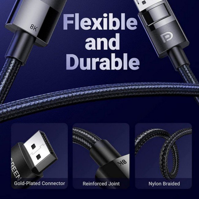 Premium Material With High Performance: Designed with tinned copper and triple-layer shielding, the DP Cable is enough to transfer high-quality and stable video and audio signals, no worry about visual and audio glitches, artifacts, and audio/video synchronization problems. The thickened SPCC shell, nylon braided cover and gold-plated connectors all ensure the superior durability under the heavy usage and multiple plugging and unplugging.