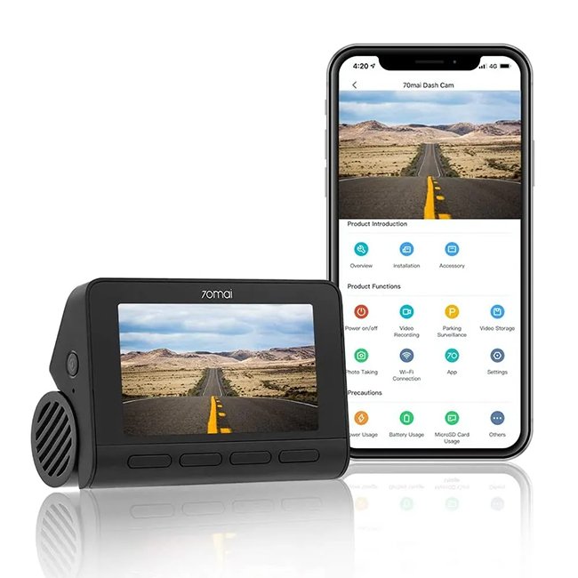The A800S uses loop recording to continuously overwrite older footage so your memory card does not run out of space. You can check and download recorded videos in the 70mai App.
