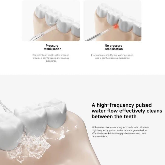 The Xiaomi Water Flosser 2 features smart water pressure stabilisation for powerful flossing that is gentle on the gums